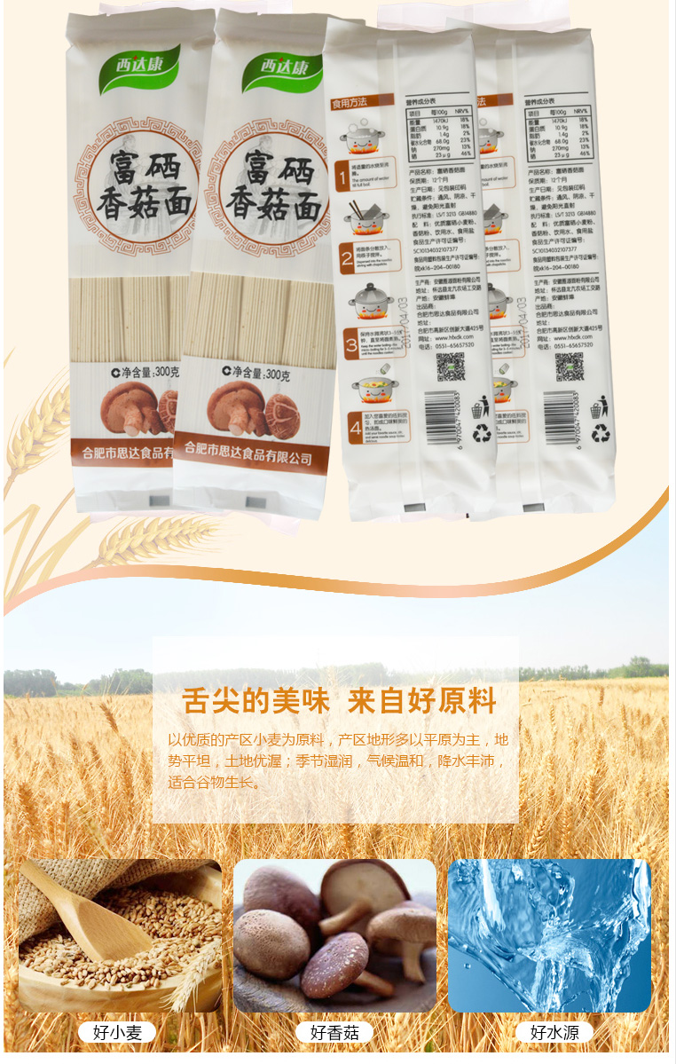 | 配料 | 優(yōu)質(zhì)富硒小麥粉、香菇粉、飲用水、食用鹽 | 保質(zhì)期 | 12個月 | ||